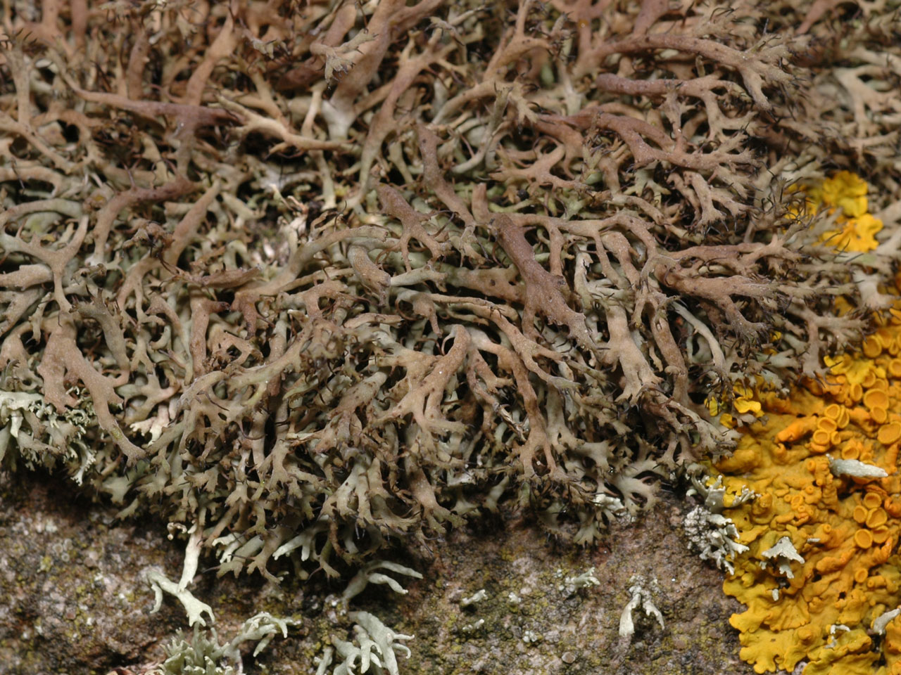 A very local lichen of sheltered coastal rocks and rock-turf interfaces. Similar to Anaptychia ciliaris but has narrower strap like thalli which are dark grey to brown when dry and dark olive-green coloration when wet, and lacks any tomentum on the upper surface.