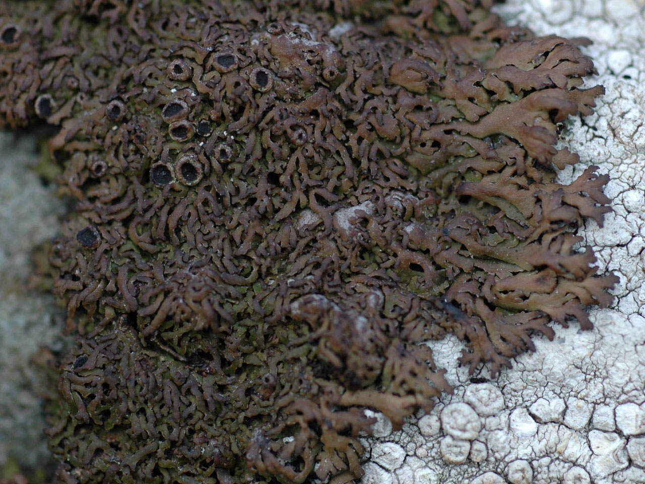 A distinctive coastal lichen, found on rocks but also on to on turf and soil, rarely found further inland on trees trunks and rocks. It has a closely appressed leafy thallus that is dark brown when dry and dull olive-green when moist.