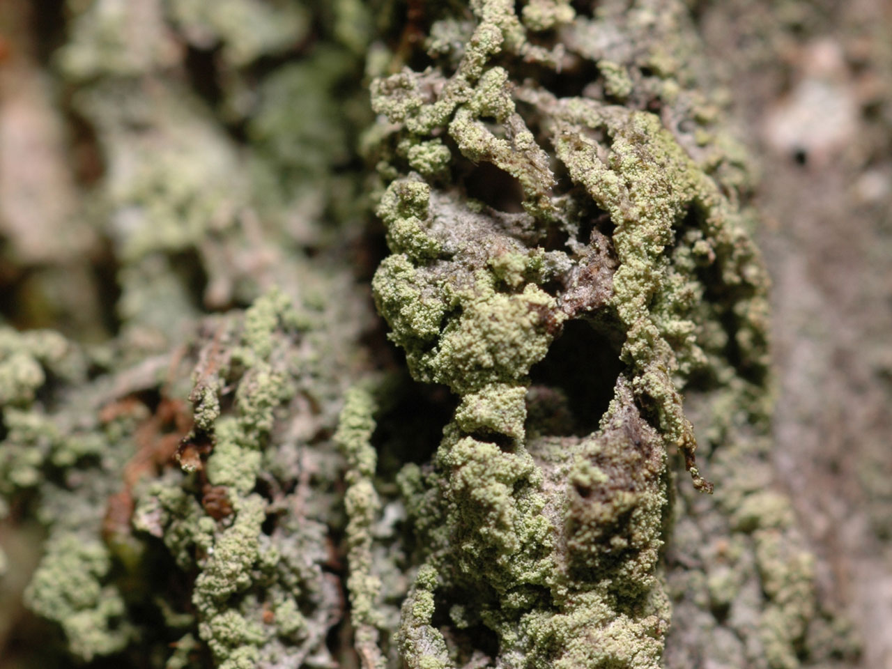 This lichen has a grey-green to dark green thallus with pale, yellowish green soralia, paler than thallus, which can become confluent. Thallus fleetingly C+ red. The pale pink to reddish brown apothecia are uncommon. Growing over bryophytes or on bark of deciduous trees and conifers, mostly in old woodlands, in less strongly oceanic parts of the uplands. A Notable species and it is listed as an indicator in the Suboceanic Woodland Index. Resembles Mycobilimbia epixanthoides, which is C–. When the soralia are confluent it can resemble a Lepraria, but no Lepraria spp is pale yellowish green and C+ red.