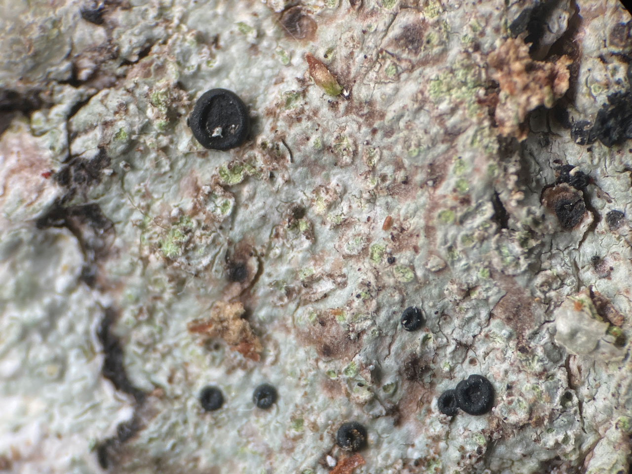 A common and variable species. The K reaction is often weak and production of red crystals should be checked in microscope preparations. The C+ yellow reaction is unexplained but often characteristic. Often confused with Mycoblastus caesius (UV+ bright white), Violella fucata (K– & Pd+ orange-red) and Xylographa vitiligo (K+ yellow, Pd+orange). Buellia arborea (K+ yellow & Pd± yellow) is similar when sterile.