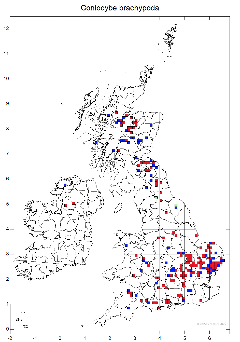 Chaenotheca brachypoda; Chaenotheca sulphurea; Coniocybe sulphurea