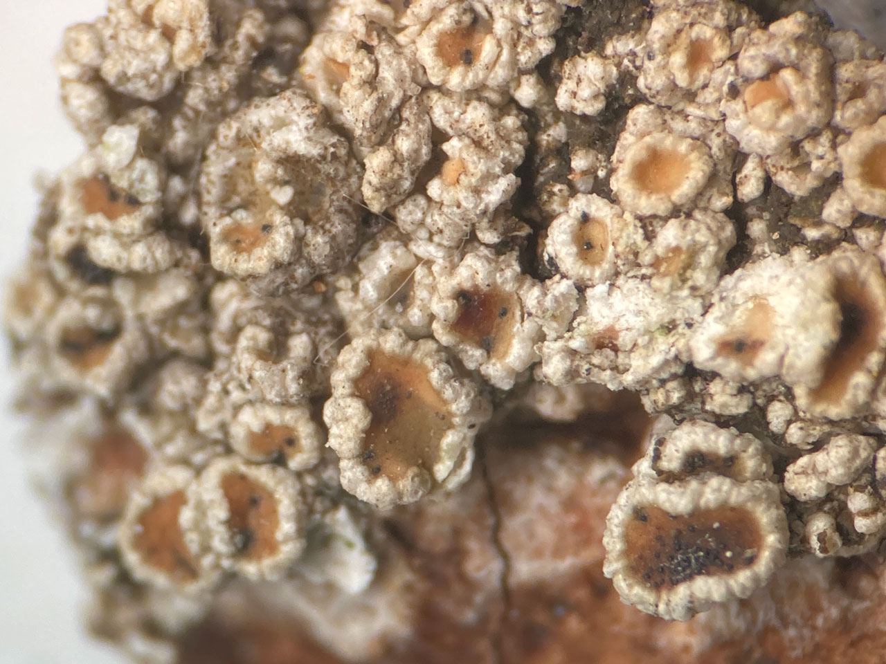 Commonly host to Vouauxiella lichenicola, and more rarely to Skyttea lecanorae Diederich & Etayo (2000) and Lichenodiplis cf. pertusariicola (Nyl.) Diederich (2003). Other lichenicolous fungi may occur, but have only been recorded as growing on Lecanora chlarotera s. lat.