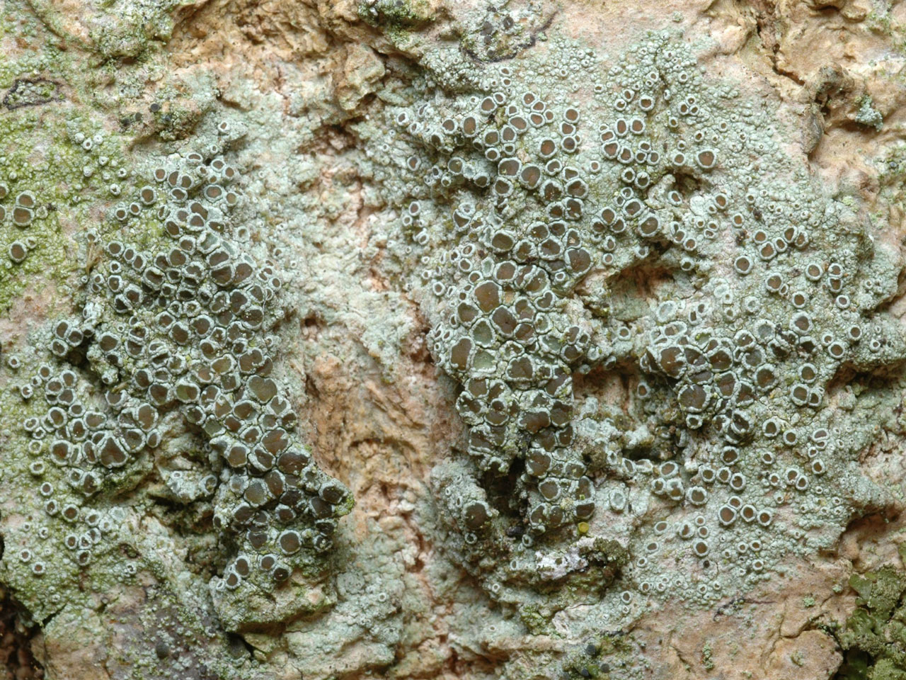 A distinctive member of the L. subfusca group, separated from L. chlarotera and allied species (Lecanora chlarotera s. lat.) by the absence of granules in the epithecium. Well developed material typically has darker brown disks than is typical of either L. chlarotera or L. hybocarpa s. lat. but poorly developed thalli with paler disks are less distinct. Lecanora pseudargentata and Lecanora pulicaris also typically have a dark brown disks but both have granules in the epithecium and have distinctive UV+ or Pd+ spot tests respectively. The dominant member of the L. subfusca group on the trunks of mature trees and generally within woodland in the west, but it does occur occasionally on twigs with other members of the L. subfusca group.