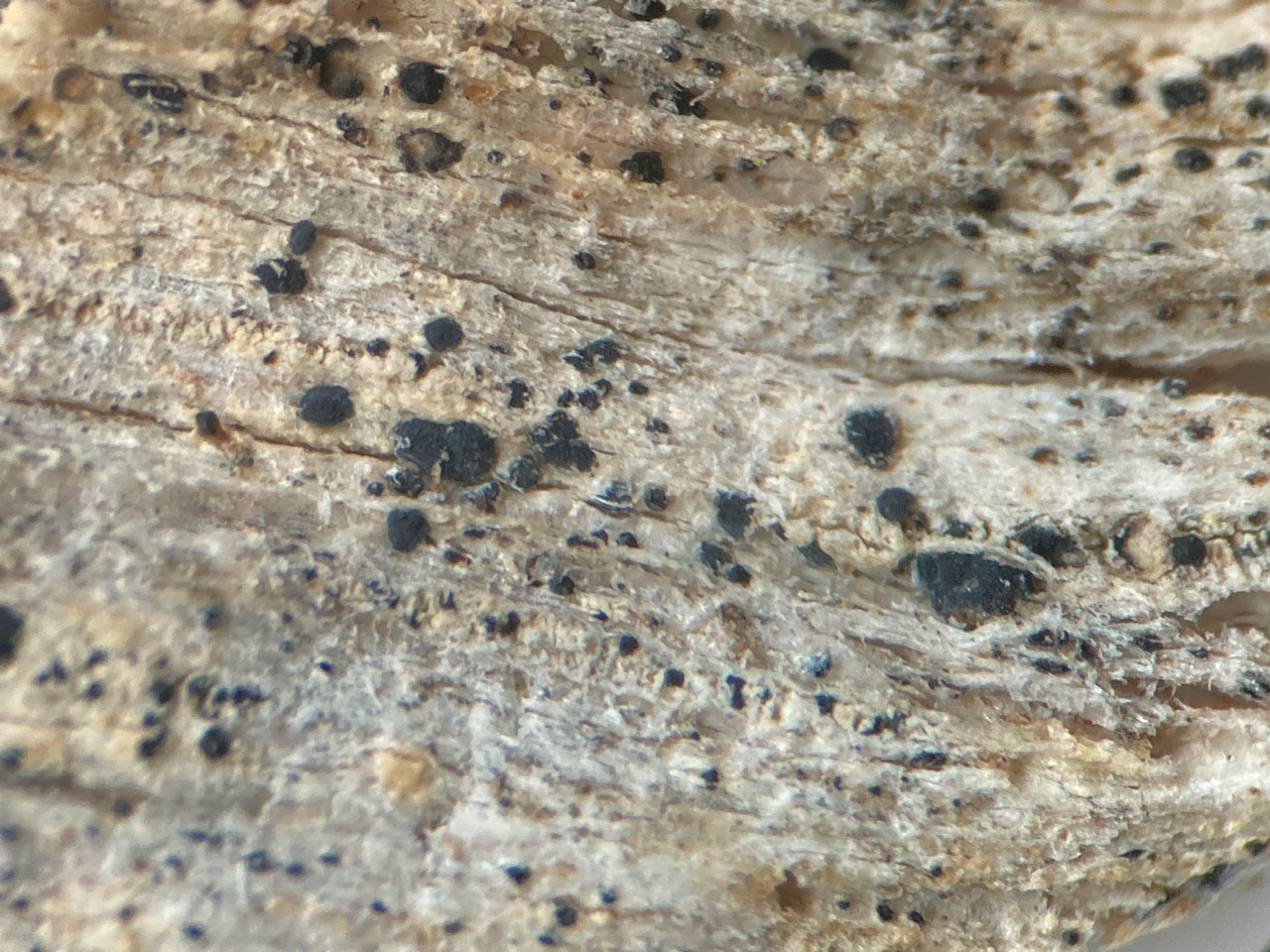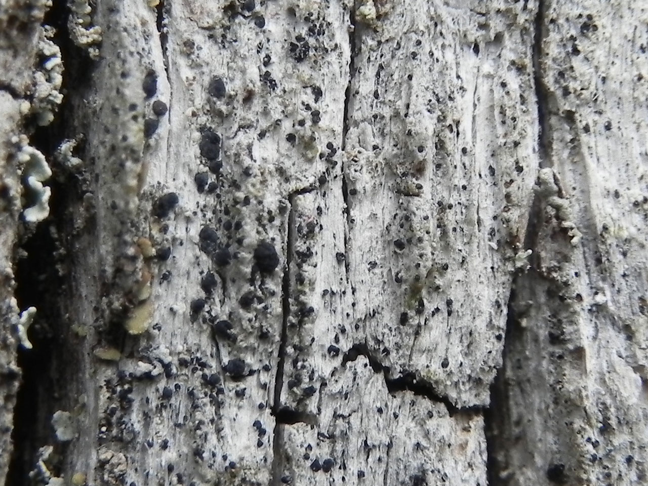 A widespread species of lignum and acid bark in the Scottish Highlands but rare, mainly on lignum to the south. Distinct in the black apothecia, which have bluish bloom when wet and sometimes thinly white-pruinose, usually associated with black pycnidia ca 100 µm diam. The epithecium is characterised by the brownish to blue-green colours which are K± green intensifying. The similar but rare L. leprarioides is separated by its sorediate thallus.