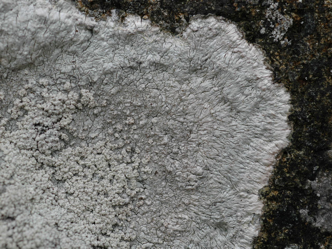 A sorediate Lepra of siliceous rock, mainly found in the uplands. Characterised by the small, pale, punctiform soralia and the Pd+ orange-rust red spot test.