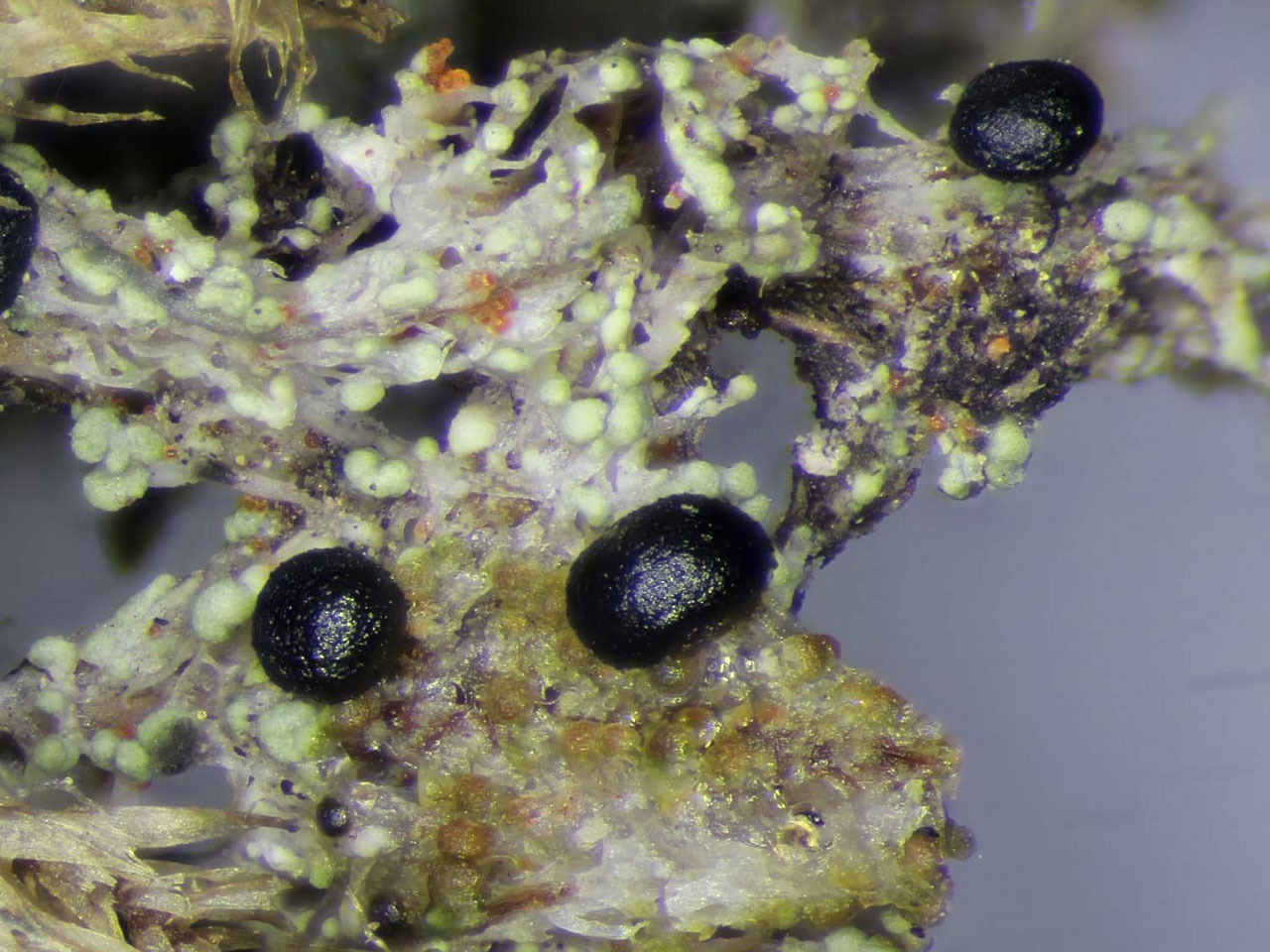 An attractive Micarea, which is easily determined by the combination of areoles with a dull yellowish tinge, which have a C+ and KC+ persistent orange spot tests. Mostly found in the Highlands and Islands and western Ireland and Britain and Ireland support the bulk of the known world population.