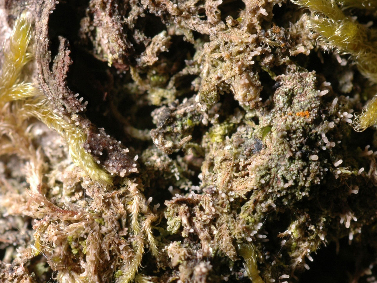 The bulk of the known world population is found in the temperate rainforests of the western Highlands and inner Hebrides where it is abundant on leached bark in very wet woodlands. Similar to southern oceanic Micarea pycnidiophora, but without C+ red reactions, and with paler and forked pycnidia and with longer conidia. Rather local to thye south where it tends to be local and found most often in higher “cloud forest” stands and ravines