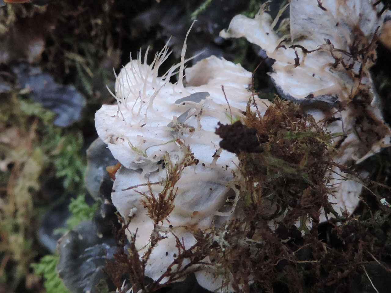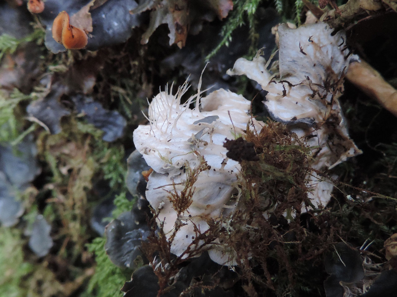 On mossy rocks, fallen trunks in ravines, rotting logs and tree bases in humid habitats.