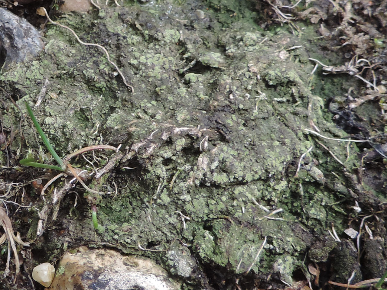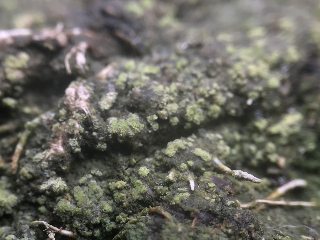 A likely rather overlooked sorediate lichen found on shaded and acid banks. Similar to Trapeliopsis pseudogranulosa but this usually has K+ purple orange patches, which Trapeliopsis gelatinosa lacks, is C+ red, while T. gelatinosa is C–, and has tightly packed soredia, while those of T. gelatinosa are loosely packed.