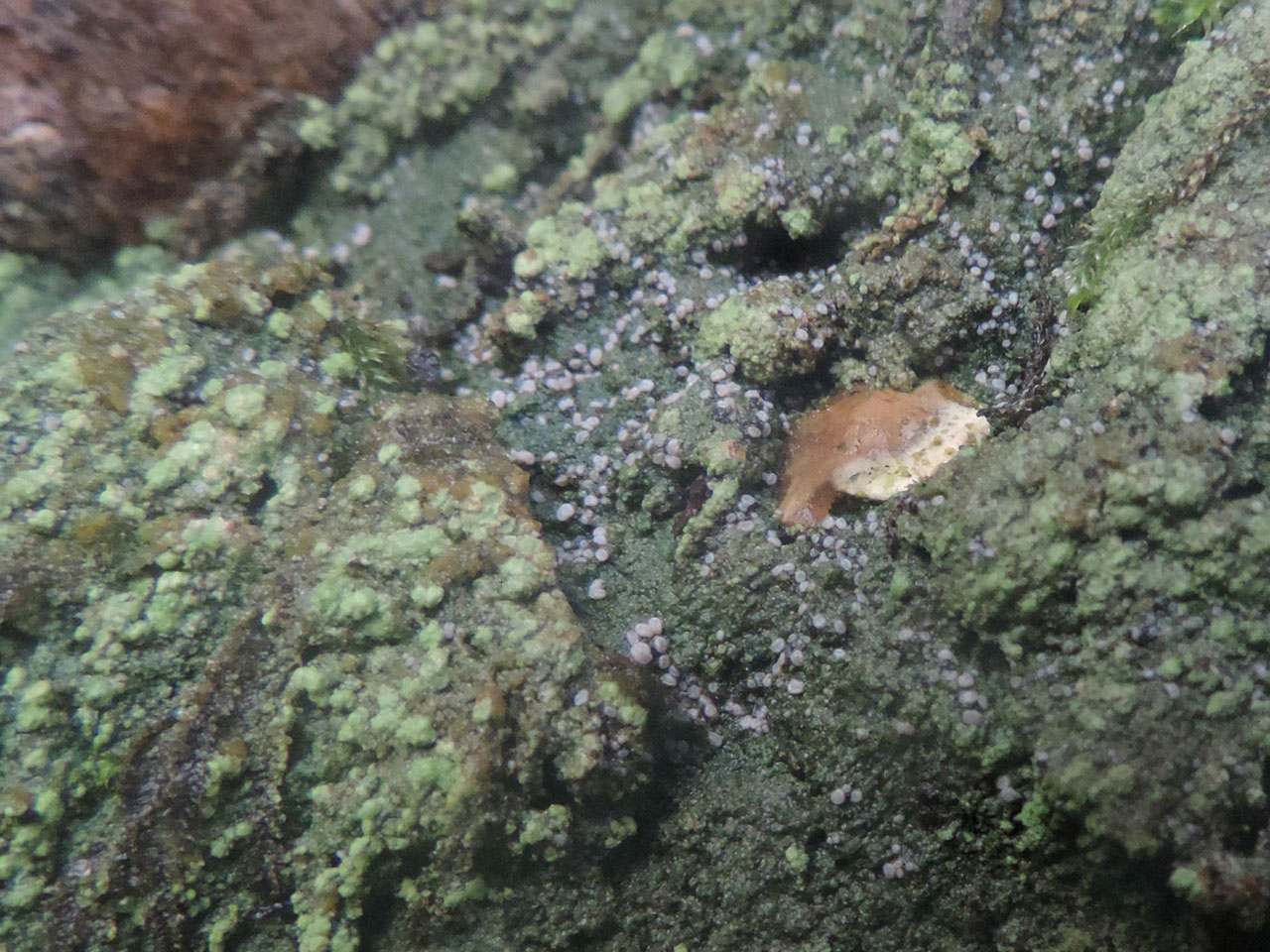 Characterised by the minutely granular thallus, rather large farinose C+ red soralia and irregular, patchy orange coloration reacting K+ purple. The orange coloration can be rare or absent, in which case the thallus resembles that of Trapeliopsis gelatinosa, but that has a C– thallus and less tightly packed soredia. Thalli without the orange pigment may aslo be miss-rercorded as either Trapeliopsis flexuosa or T. granulosa but these have areolate thalli.