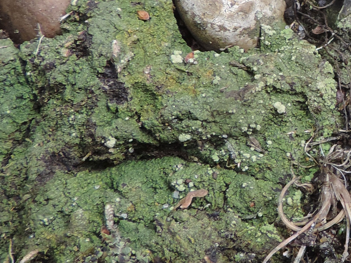 A common sorediate lichen of damp acid substrates, especially in the north and west. Generally readily recognisable by the combination of the C+ red green thallus, the paler soralia and the K+ purple orange patches. The latter can be rare or missing, however, so should not be relied upon, the C+ species Trapeliopsis flexuosa or T. granulosa have more strongly areolate thalli that are not green and the similar looking Trapeliopsis gelatinosa is C–.