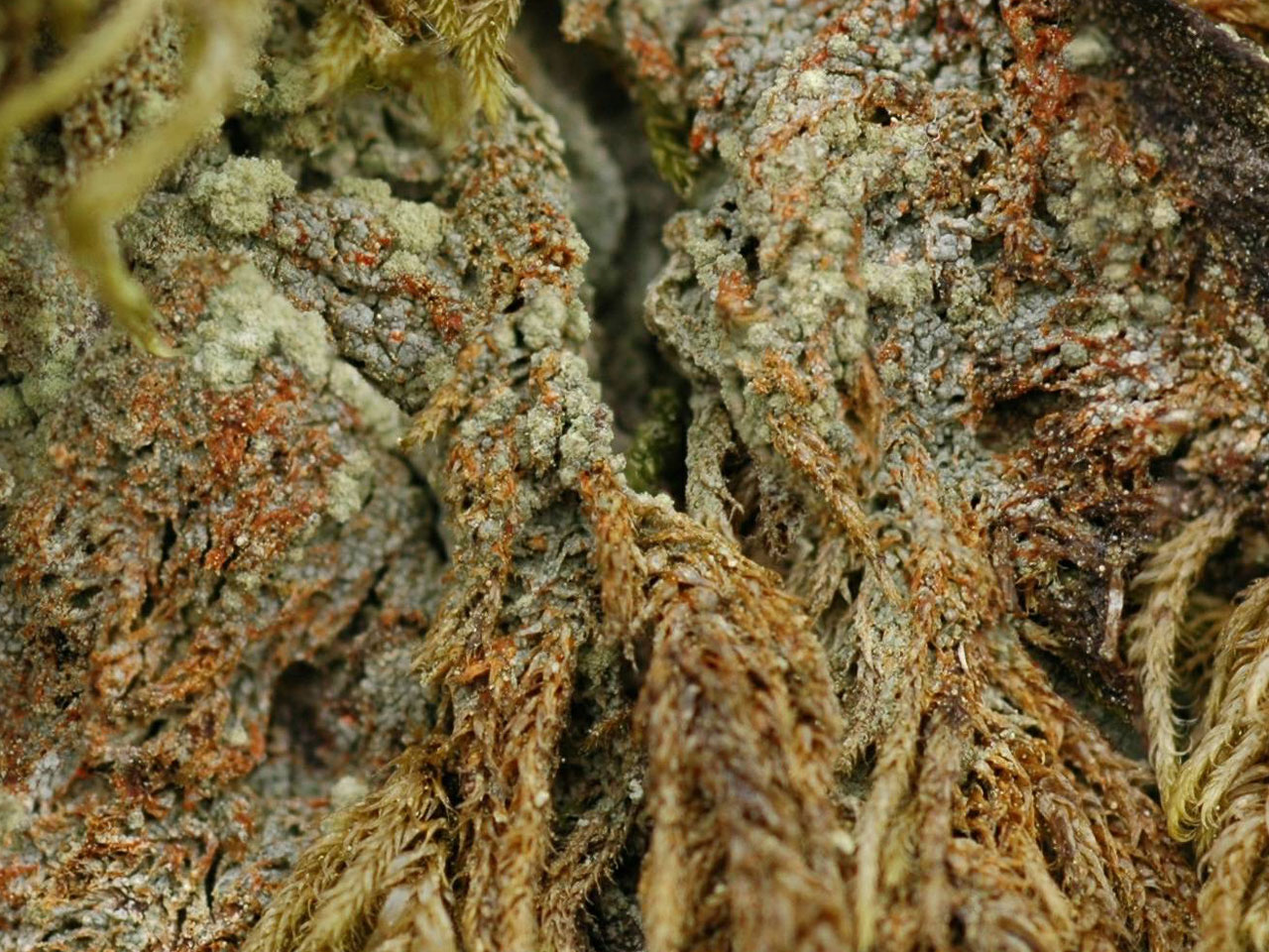 Thallus effuse, often wide-spreading and forming large patches to 20 cm diam., grey- or green-white, in part patchily orange-pigmented, K+ purple, of granular areoles that can coalesce forming a faintly cracked granular crust; areoles mostly 40–200 µm diam. Soralia mostly 0.2–1.6 mm diam., green-white, in part orange- pigmented, at first convex and discrete, later coalescing and forming coarse, irregular patches; soredia 18–25 µm diam., farinose, tightly packed together. Apothecia very rare in our region, 0.4–1 (–1.6) mm diam., rare, ± appressed, flat with a shallow, wavy true exciple; disc green-grey to grey-black. Ascospores 10–12.5 × 3.5–6 µm. Thallus, soralia and apothecia C+ red, Pd–, UV–; orange pigmented areas of thallus and soralia K+ purple, UV± deep orange-red (gyrophoric acid and an unidentified anthraquinone).